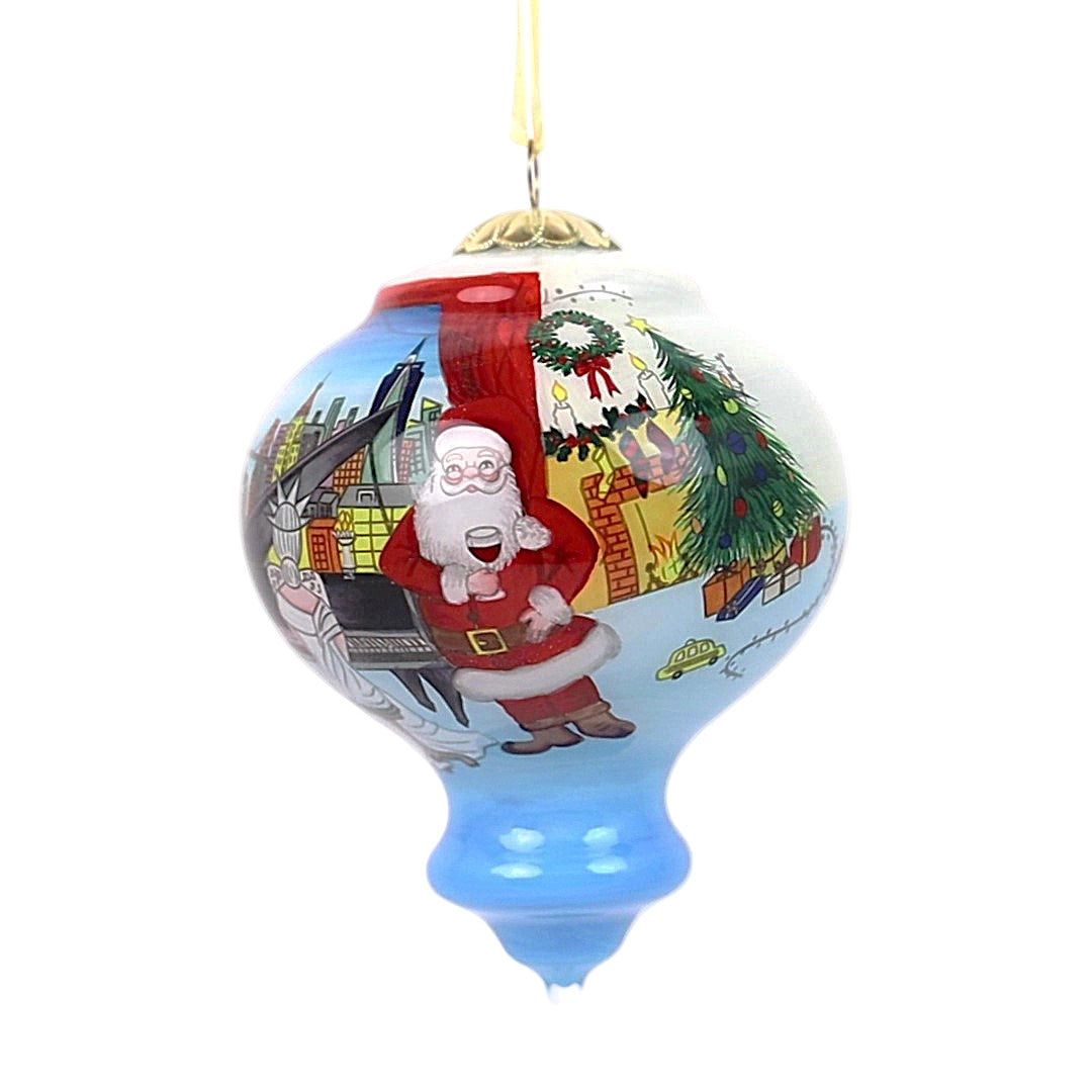 Add a whimsical twist to your holiday décor with the Santa and Liberty Piano Recital Glass Ball. Inside this delightful scene, Santa stands cheerfully with a glass of wine in hand, enjoying a festive piano performance by none other than the Statue of Liberty herself. Set against a cozy New York backdrop, it’s a playful blend of holiday cheer and patriotic charm.
