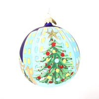 Celebrate the splendor of the holiday season with this stunning hand-painted blue glass ball ornament, featuring the world-famous Rockefeller Center Christmas Tree surrounded by its iconic trumpet-playing angels. A tribute to one of New York City's most beloved holiday traditions, this ornament captures the awe and wonder of the winter season in vibrant, elegant detail.
