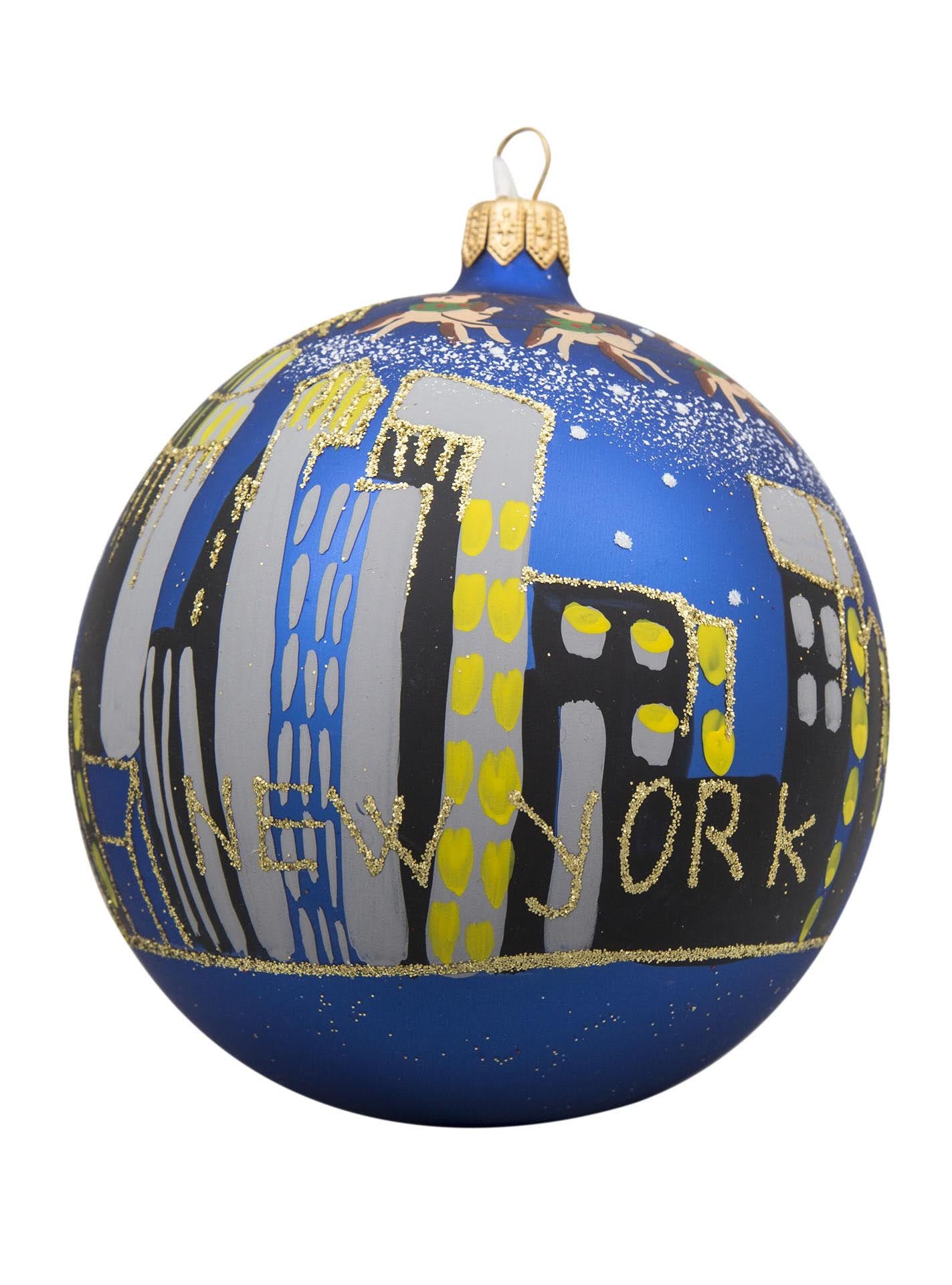 Add a whimsical touch of holiday magic to your tree with this enchanting hand-painted blue glass ball ornament, featuring the New York City skyline beneath Santa’s sleigh in flight. Whether you’re a New Yorker, a frequent visitor, or simply someone who dreams of a Christmas in the Big Apple, this ornament is a timeless keepsake that brings joy year after year.