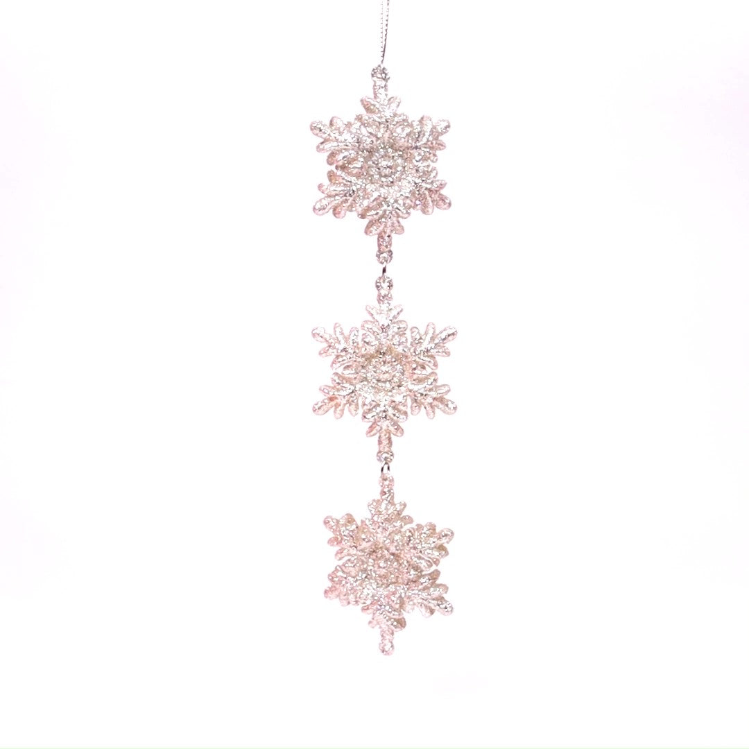 Bring shimmer to your holiday décor with this elegant trio of silver glitter snowflakes. Crafted from durable acrylic, each intricately detailed snowflake sparkles beautifully under the light. At 8.5 inches long, it’s perfect for trees, windows, or festive displays—adding a touch of winter charm wherever it's placed.